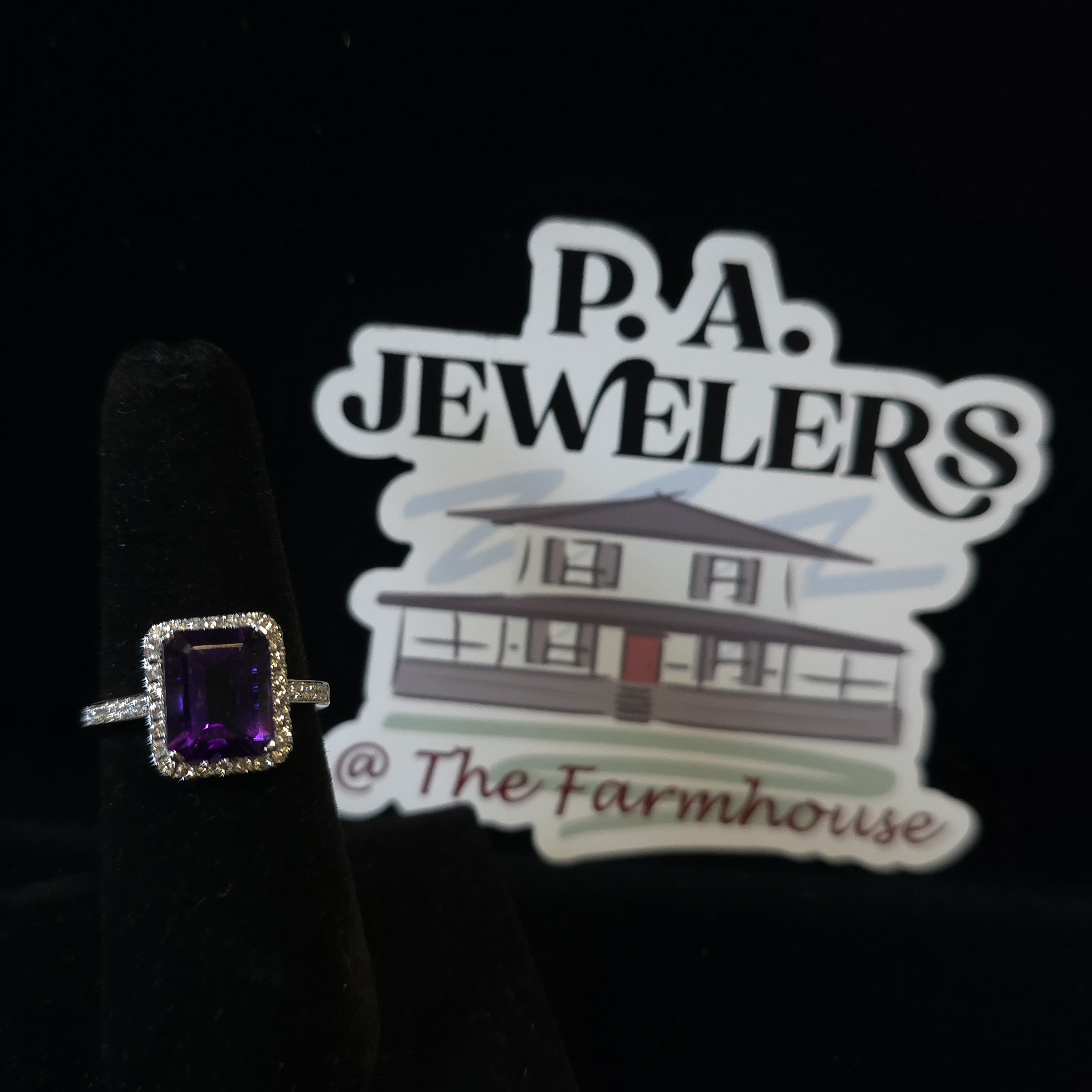 February is just around the corner, & amethyst is the birthstone for February birthdays. This stunning ring features a beautiful 2.76Ct emerald cut deep purple amethyst surrounded by .25Ct total weight of diamonds! The sparkle of white diamonds really does bring out the gorgeous color......