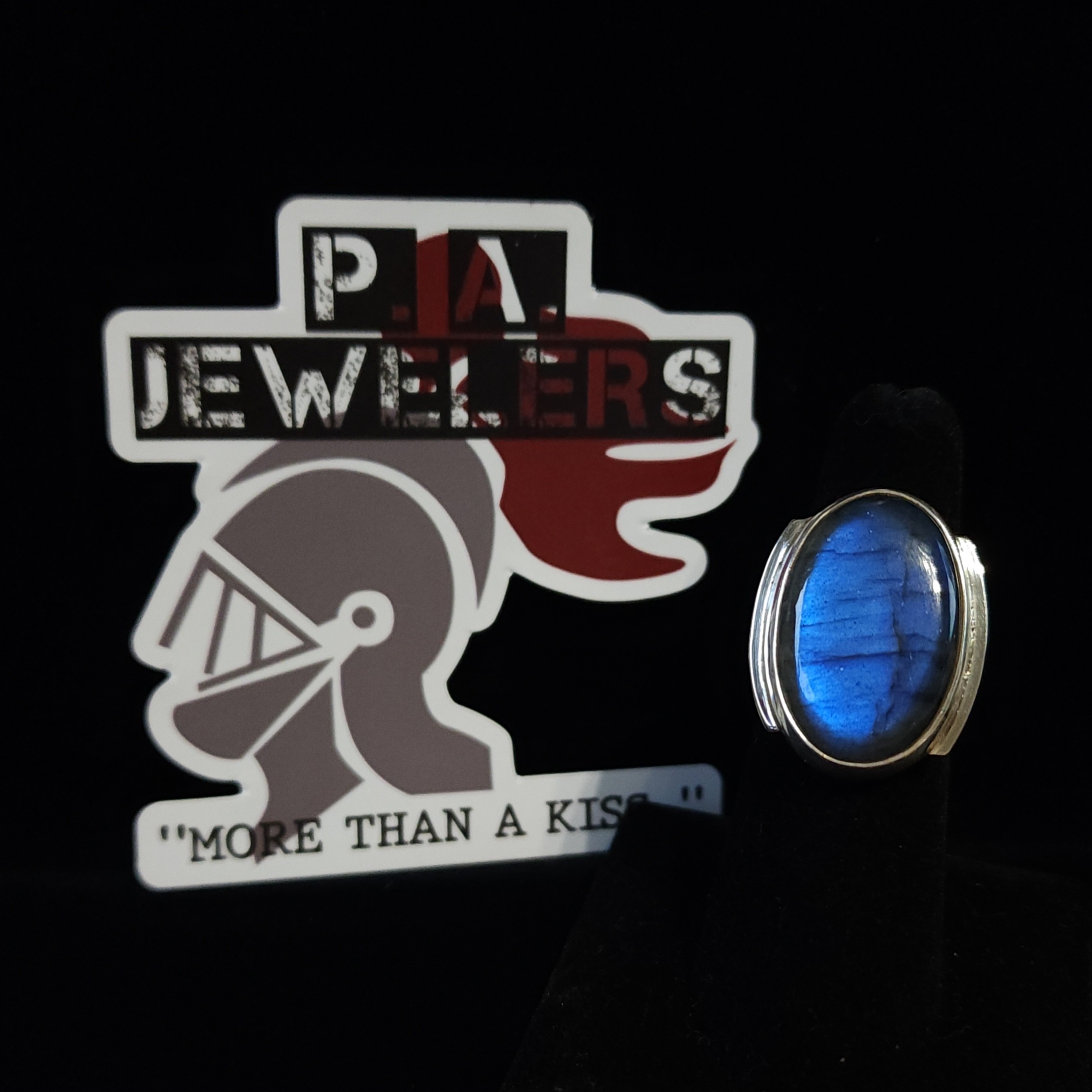 Typically, we see the iridescence of labradorite in gray, brown, green, or even pale blue colors. This piece is an absolute brilliant deep blue…and I am in love with it! Set in .999 fine & .925 sterling silver by one of our local jewelry artists. The labradorite in this piece is stunning! #morethanakiss #localjewelryartist