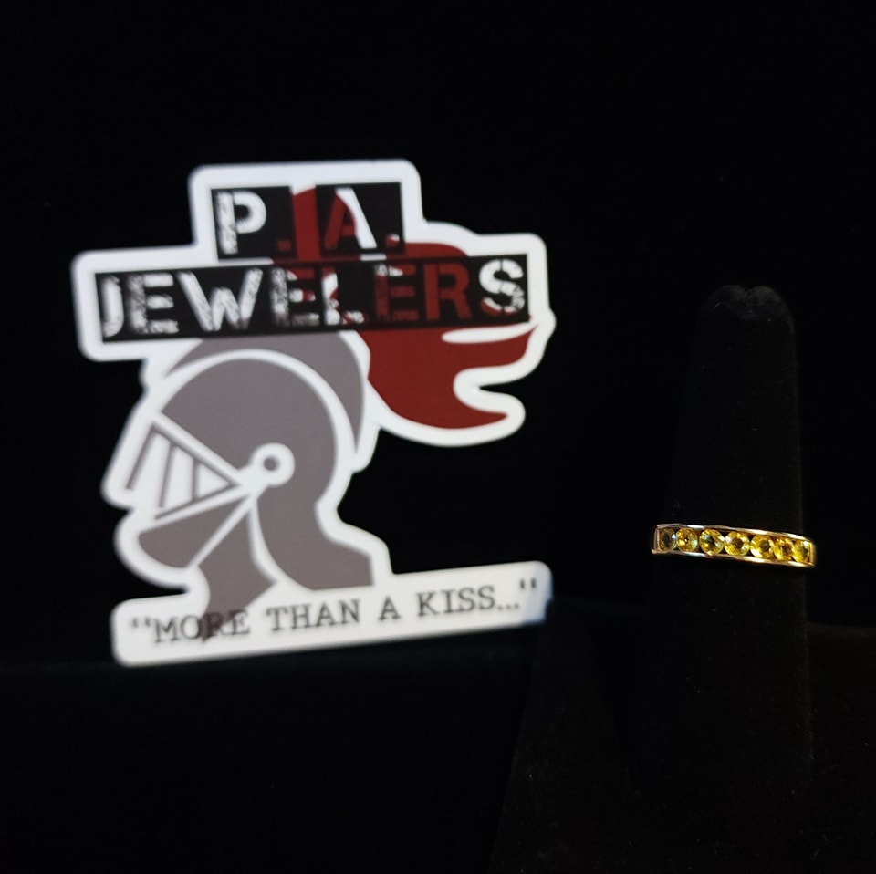 Set in 14Kt yellow gold, this gorgeous channel set band is set entirely in yellow sapphires! The band has 7 round yellow sapphires, .70Ct total weight. This band is certainly unique and undeniably beautiful! #morethanakiss #estatejewelry