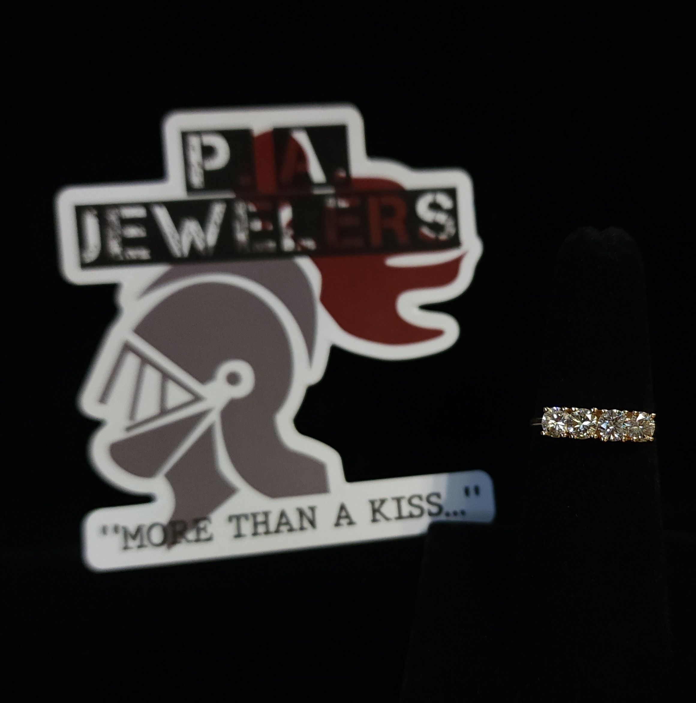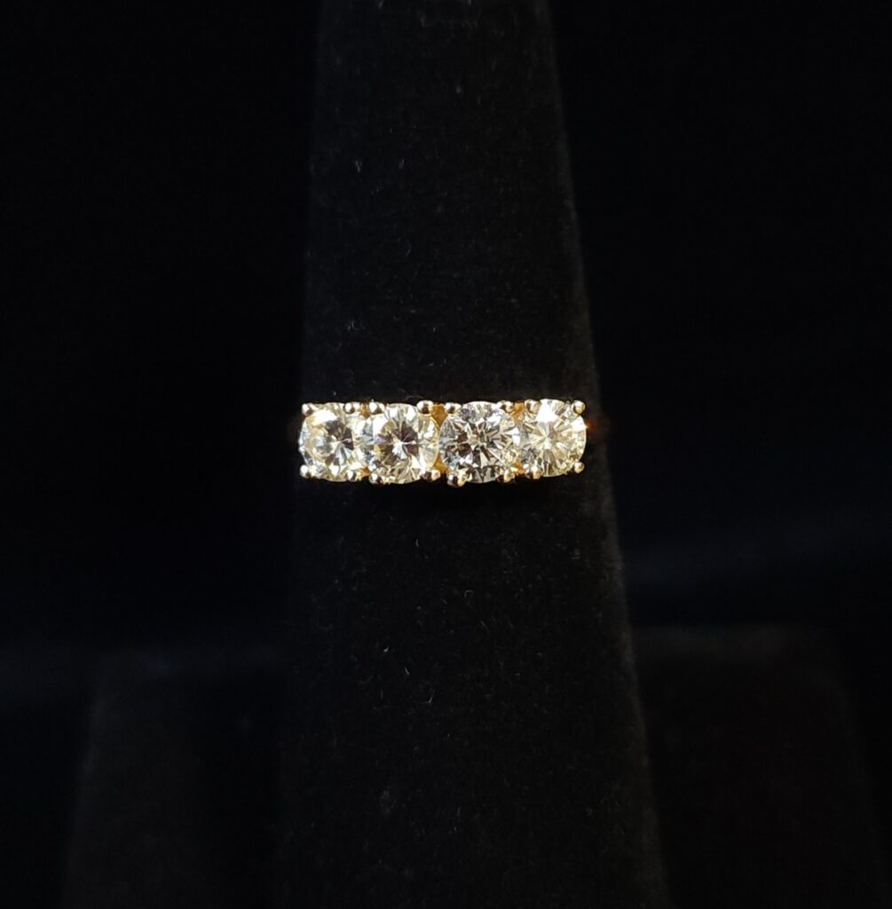 Set in 14Kt yellow gold, this gorgeous band has four 0.25Ct diamonds (1.0Ct total weight)! The size of these diamonds give this ring perfect proportion…it is absolutely beautiful! #morethanakiss #estatejewelry