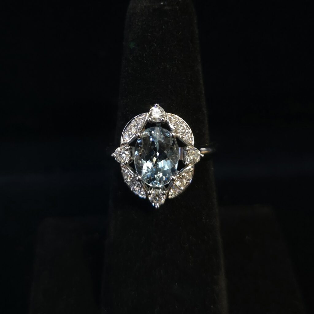 Aquamarine! When you see an aquamarine with a deep blue color, you just have to have it! This gorgeous ring is set in 14Kt white gold and has a 1.92Ct stunning blue oval aquamarine! The aquamarine is accented by .37Ct total weight of diamonds! I don’t think this ring will last very long 🩵! #morethanakiss #atthefarmhouse #newjewelry #aquamarine #aquamarinering