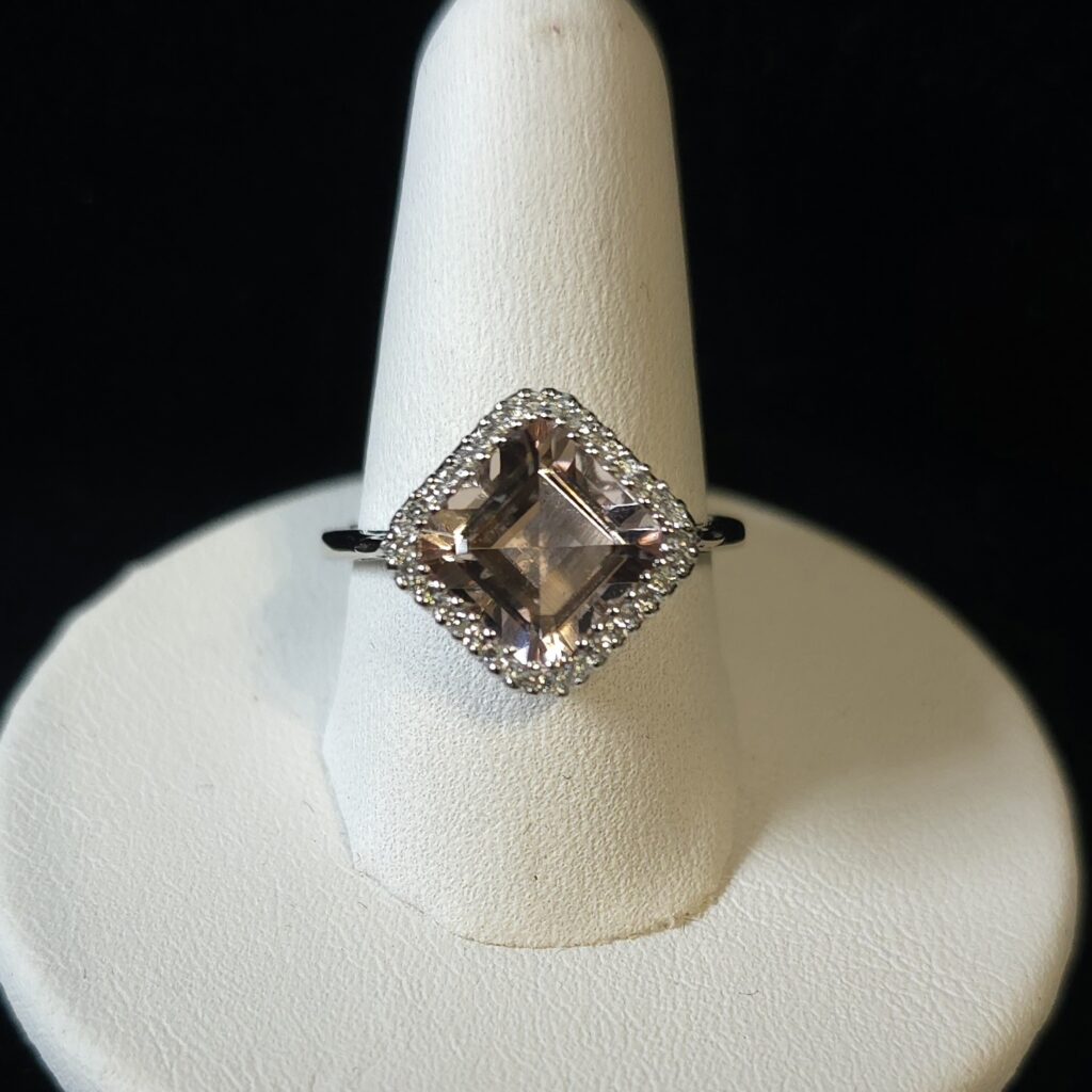 I brought this ring in because I have never seen a princess cut morganite…and this one is stunning! Set in 18Kt white gold, this ring has a 1.75Ct morganite surrounded by .20Ct total weight of diamonds! The look from the step-cut in this morganite is mesmerizingly beautiful!! #morethanakiss #atthefarmhouse #newjewelry #princesscutmorganite #morganite #morganitering