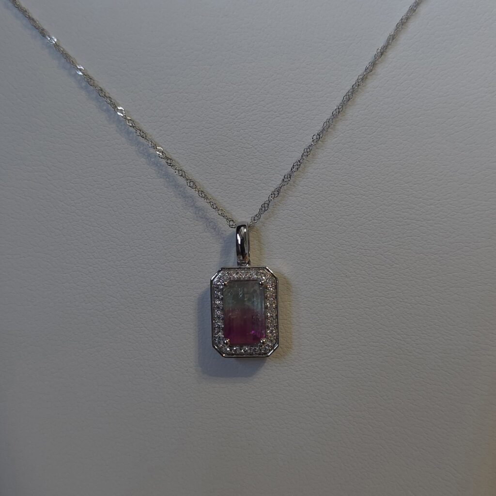 This stunning 1.8Ct watermelon tourmaline pendant captures a rare blend of soft greens melting into vibrant pinks – each stone completely one-of-a-kind. Framed in a delicate halo of sparkling diamonds (.14Ct TW) & set in 14kt white gold, it’s a perfect balance of organic beauty & refined elegance. Whether you’re drawn to its unique color story or its effortless sparkle, this pendant is a true conversation piece – made to stand out, just like you!#morethanakiss #atthefarmhouse #newjewelry #WatermelonTourmaline #OneOfAKind #EverydayLuxury
